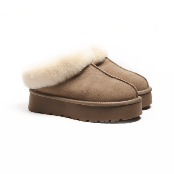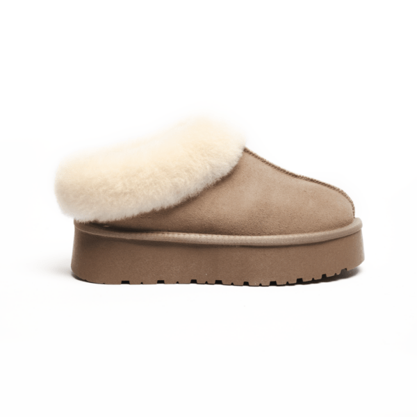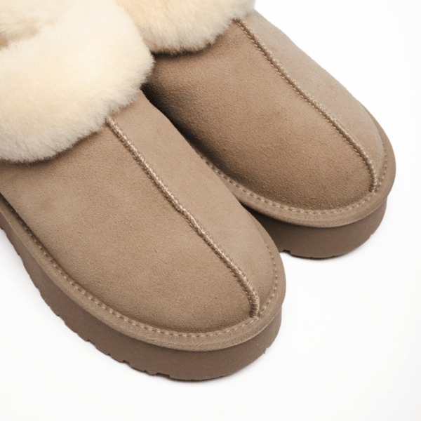 Верх виготовлений із натуральної замші, яка відома своєю довговічністю, привабливим виглядом і м’якістю. Капучиновий колір додає взуттю вишуканості, дозволяючи легко інтегрувати уггі у будь-який стильний зимовий образ. Цей нейтральний відтінок є універсальним і підходить для поєднання з одягом різних кольорів.